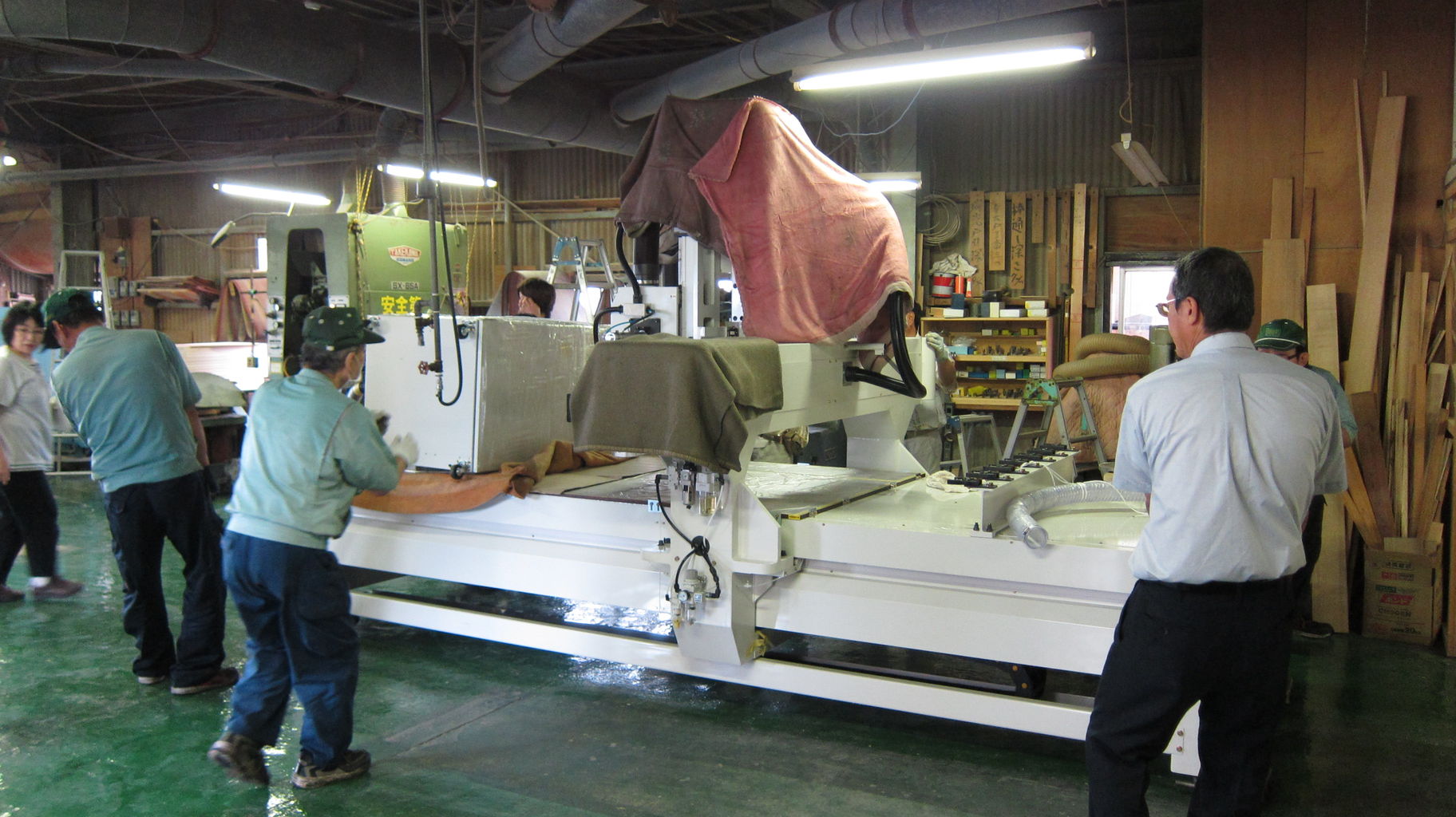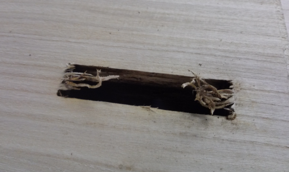 木工機械で手加工している際は、刃の切れ味や固さを感じながら、早く押したり、ゆっくり押したりして手加減してましたが、NCはデータ通り進むので手加減なし。たぶん、刃が切れてないとお灸みたいになって発火するかも。単体の煙感知器でも貼り付けておいたがいいかも。また、もし、そういう場合は消火器では粉が吹き飛んで、2次的火災の危険があるので、水をかけるのが一番いいかな、集塵機にも吸い込んだにどうなる、と、会議で話合い衆知。