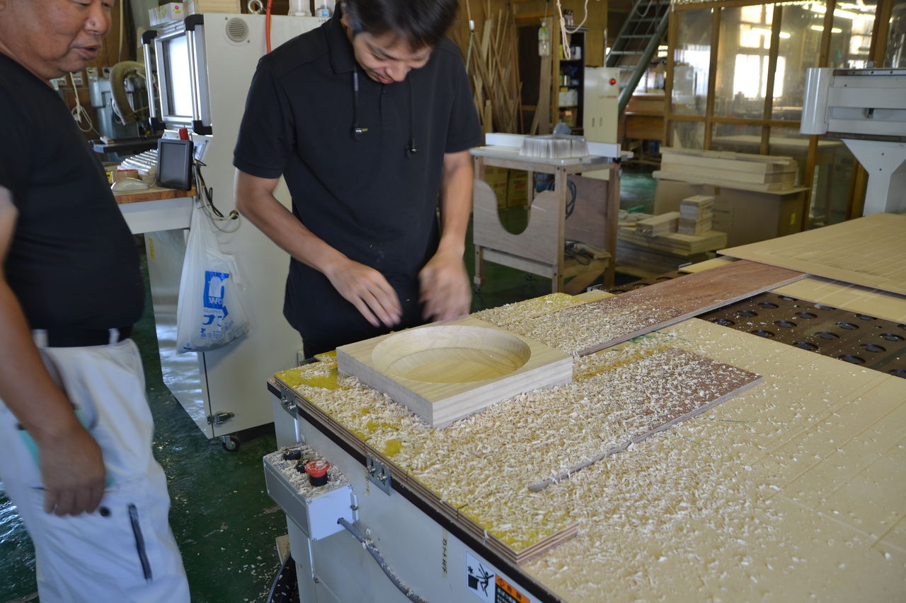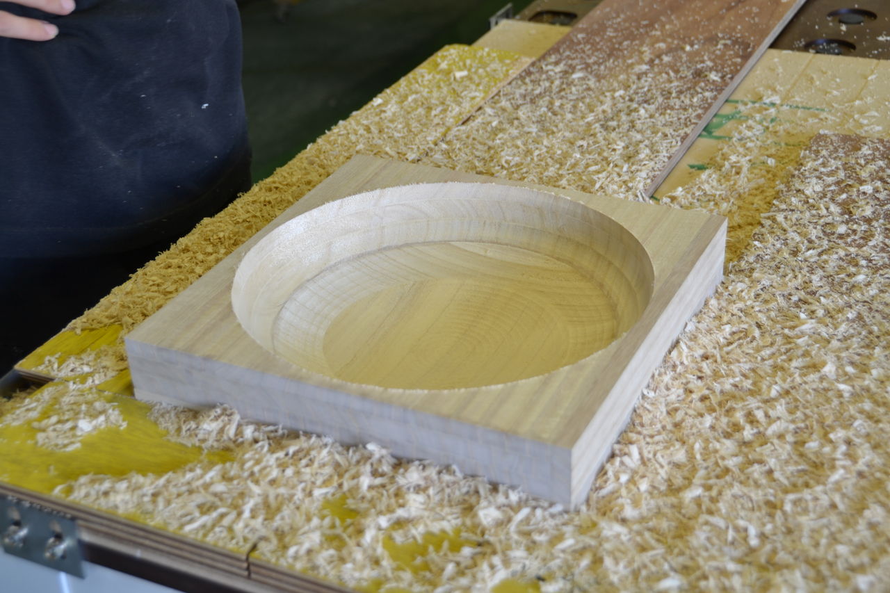 二度と作れないと思っていた”風浪”。Fusion360にポストを組み込み自社でデータ作成し、自社のNC(シンクス)で復活しました。なだらかな凸凹面は、思わずなでてみたくなるでしょう。木工祭り会場(1F右通路中程)に展示致しました。”風浪”の詳しいことは→ここから。