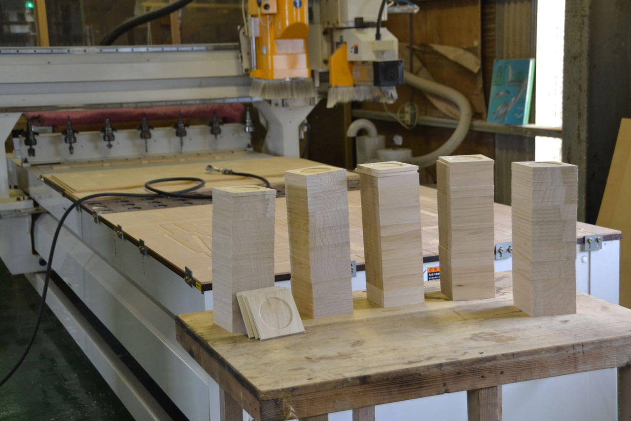 私がモデリングして、工場長(次男)がCAM化。SHINX(木工NC)にGコード渡してすんなり。