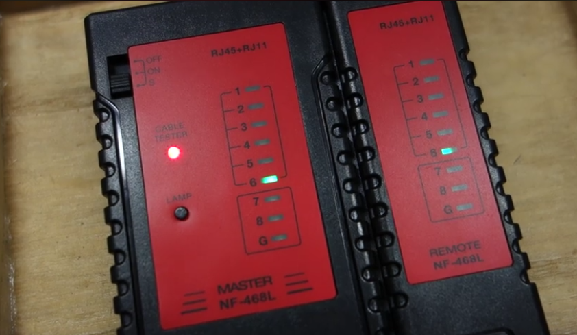 それで、隣のPCのLANケーブルを私のPCに、ポチッと挿してみました。そしたら、サクサクじゃないですか。まぁ〜ビックリです。LANケーブルチェッカーで調べたら(2)が断線していることが分かった。そのLANケーブルはカテゴリー7の新品(昨年12月始め購入)。まさかまさかでした。